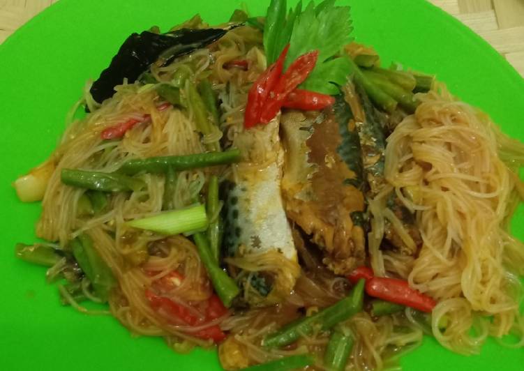 Sarden bihun, dimasak dengan bumbu dan bawang bombai, dimakan bersama nasi hangat membuat makan siang anda terasa nikmat.